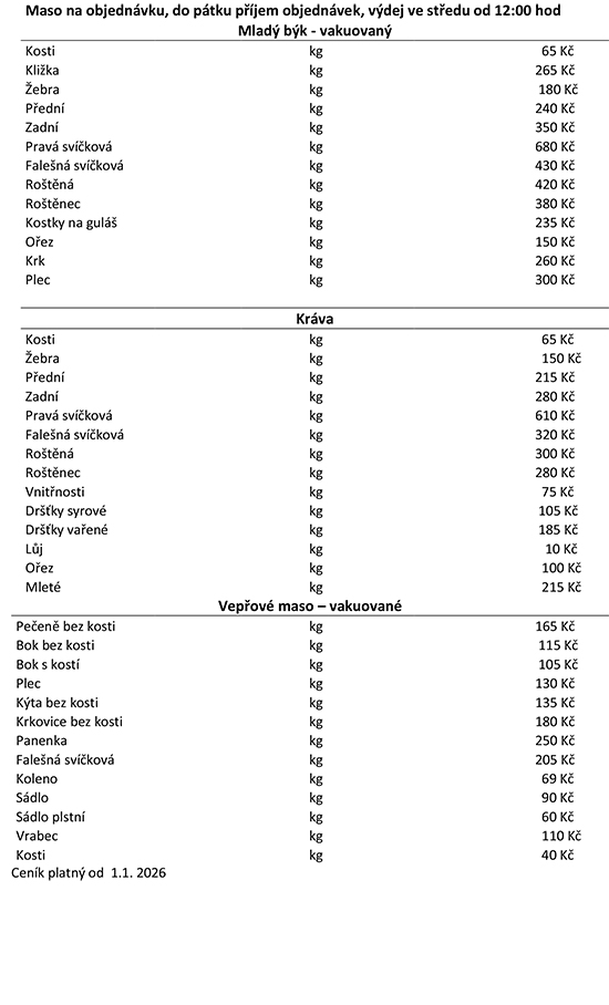 V případě zájmu o telecí maso a zvěřinu, zanechte svůj kontakt v prodejně, nebo sledujte naše fb stránky, kde informujeme o termínu objednávek.